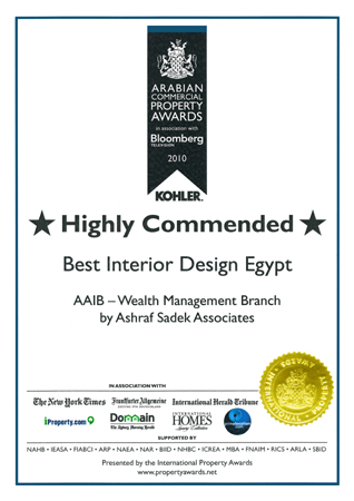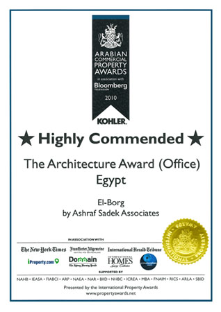 ASA AWARDS Ashraf Sadek Associates ASA is proud to announce that it has won two international awards for "Best Office Architecture in Egypt" and "Best Interior Design in Egypt" for the year 2010 from the International Property Awards in association with Bloomberg Television. The Best Office Architecture Award was for our design of El-Borg Office Building in the Smart Village in Cairo, currently under construction and to be completed in late November 2010. The Best Interior Design Award was for our design of the Arab African International Bank (AAIB) Wealth Management branch in the Bank's headquarters in Garden City, Cairo, which was launched in May 2010. The results were announced during September in London UK. The awards were presented to winners from allover the Arabia region in a ceremony that was held in Madinat Jumeirah Ballroom in Dubai on October 26, 2010. ASA issued a brochure for this special event. We are extremely proud to receive these two international awards as it represents a recognition for the quality of our work and it gives us assurance that we are on the right track to achieve our goal of being one of the leading Architecture/ Interior Design firms in our region. This achievement shall drive us to work harder to realize more success for our firm and our valued clients.